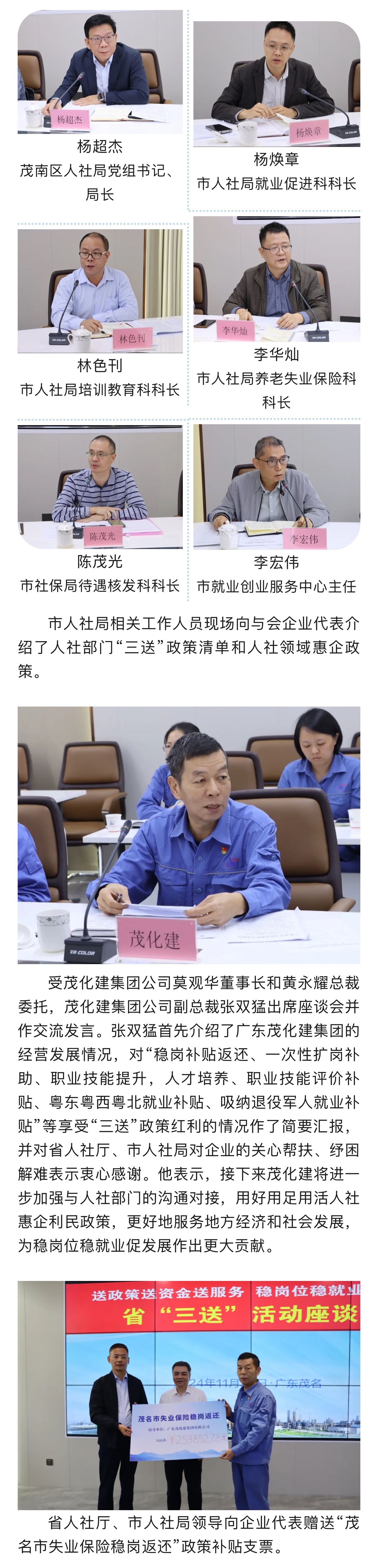 省人社廳“三送”活動座談會在茂化建舉行