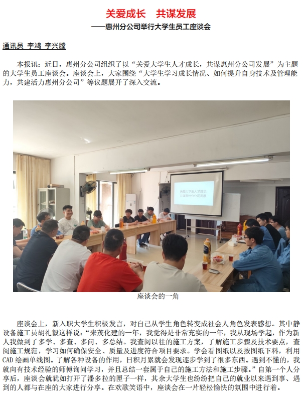 惠州分公司舉行大學(xué)生員工座談會(huì)