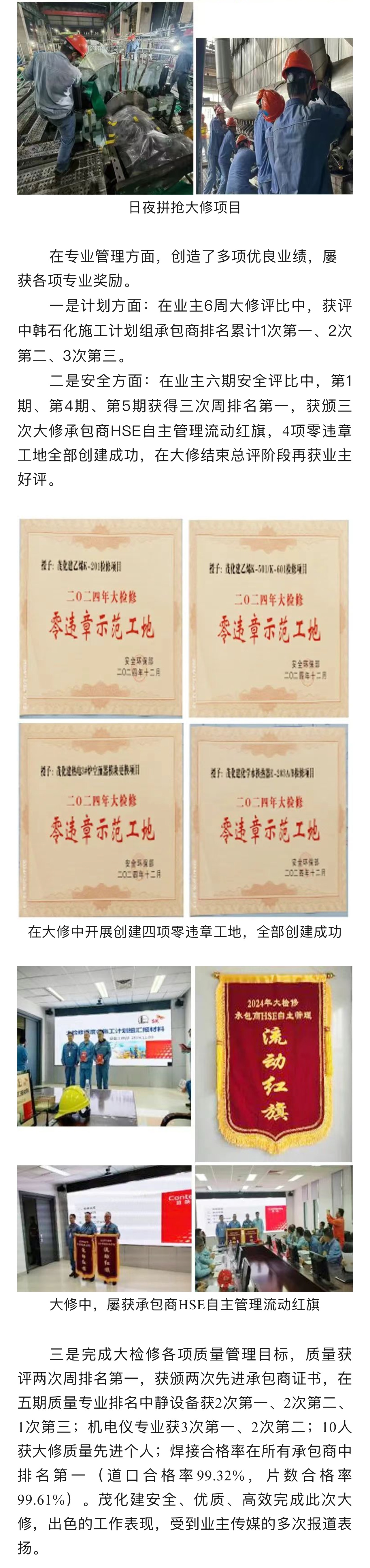 喜報(bào)|榮獲中韓石化2024年大修改造 “優(yōu)秀承包商”稱(chēng)號(hào)